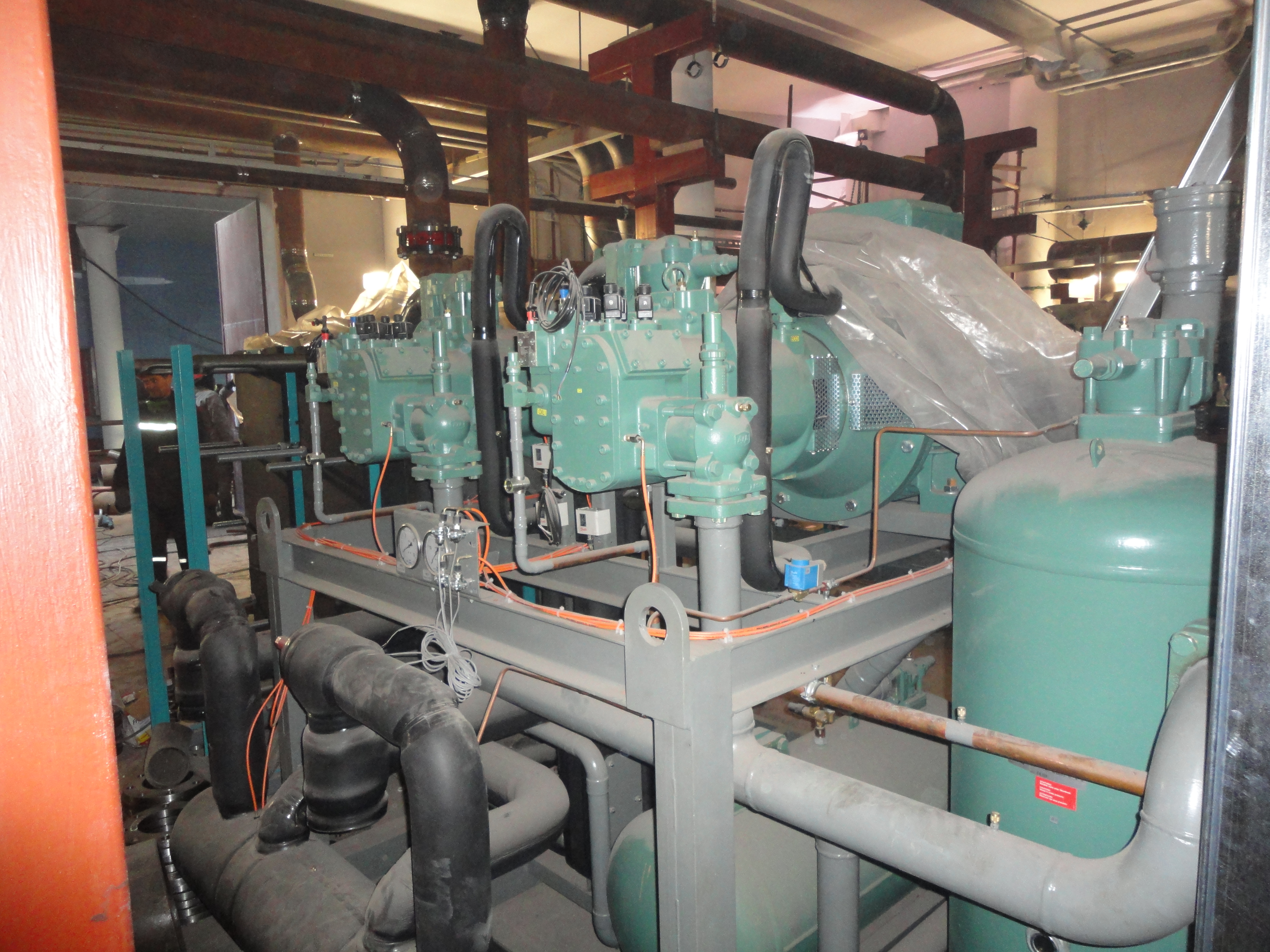 Было поставлено четыре агрегата (две холодильные машины для холодоснабжения ледовых полей и две холодильные машины для холодоснабжения системы кондиционирования большой ледовой арены) общей холодопроизводительностью 4 210 кВт холода.